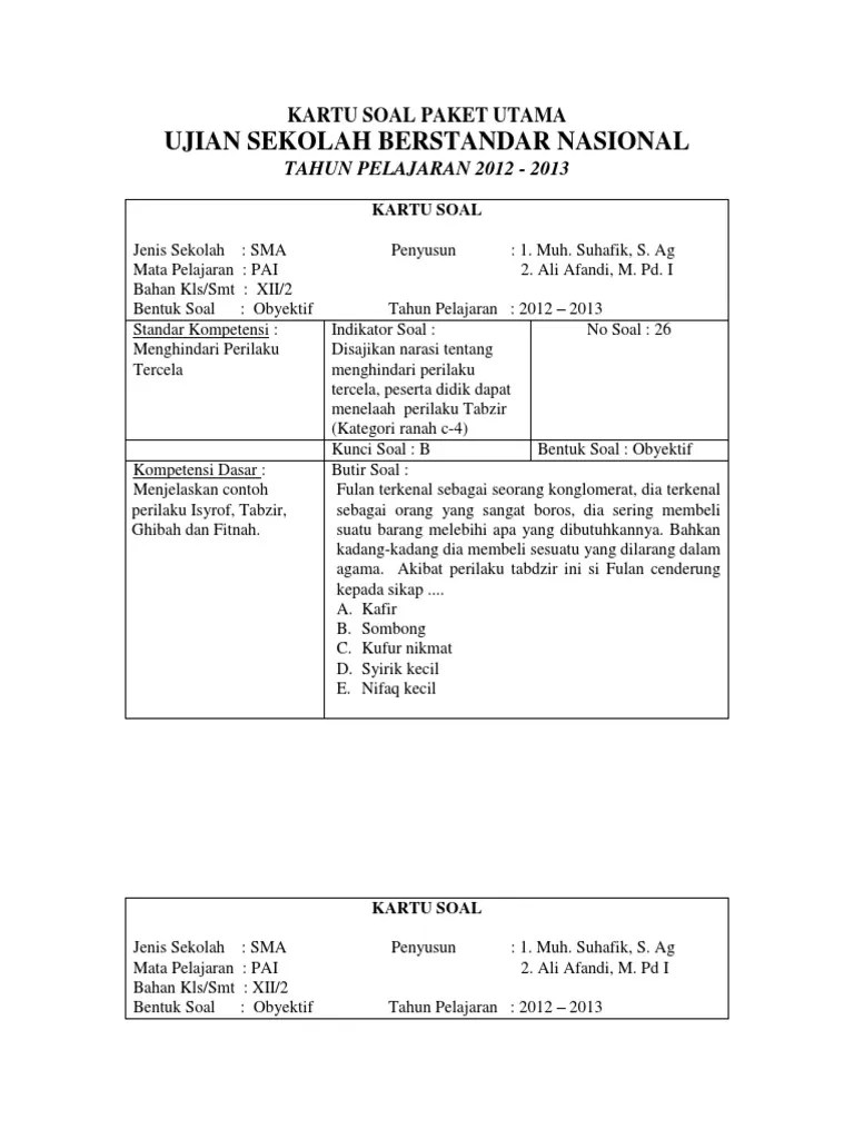 Kartu Soal Uas Kelas 9 Agama Islam / Kisi Kisi Uas Pai Kelas Xii Semester 2 Tahun Ajaran 2017 2018 Pai Smk Bina Rahayu - Soal ulangan umum semester 1 kelas ix.. Kisi kisi pai pas kelas 7 5. Soal ulangan umum semester 1 kelas ix. Contoh soal hots memproses dan mengintegrasikan informasi tabel 3.8 kartu soal 2a uraian hots mata pelajaran : Kumpulan soal ulangan harian (uh) kelas 5 semester 2 sd kurikulum 2013 · soal dan kunci jawaban uts pai (pendidikan agama islam) kelas 2 . Kisi kisi pai pas kelas 9 7.